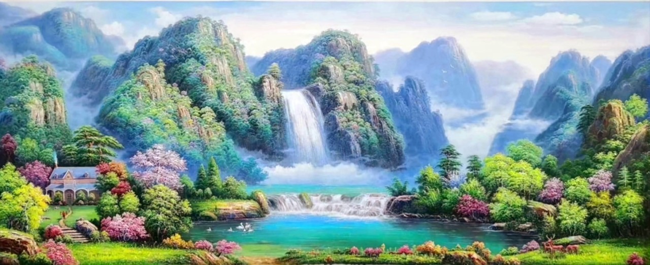 • Tranh Đá Quý: Nước Chảy Sinh Tài