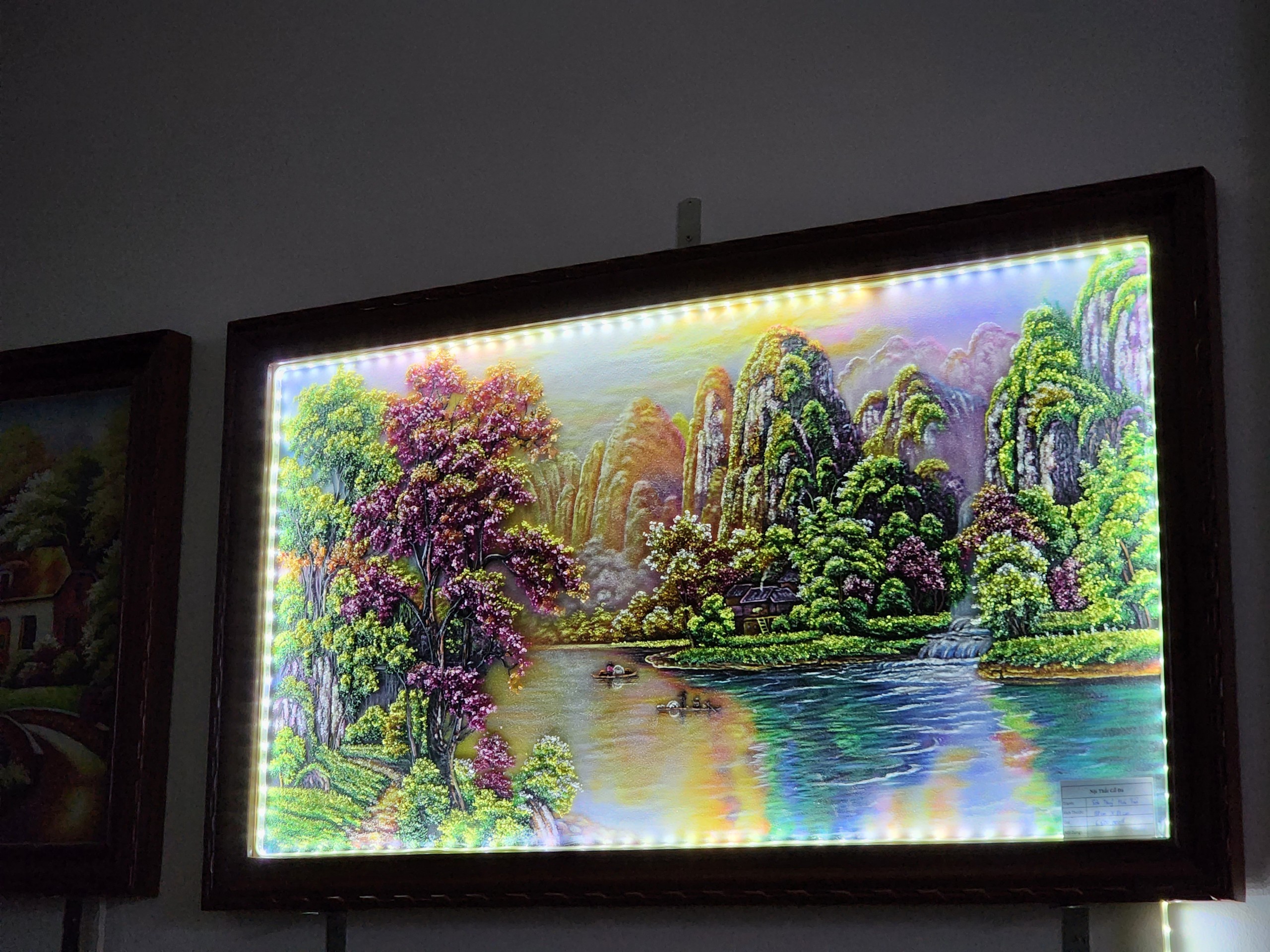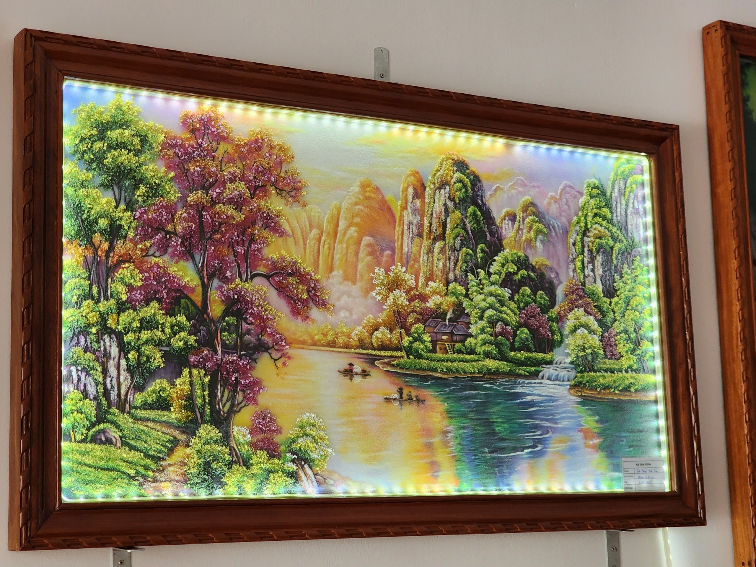 Những dãy núi trùng trùng điệp điệp đội trên mình dải mây trắng xóa, ánh mặt trời đỏ rực nhuộm màu rừng cây xanh ngắt, những thác nước đổ òa xuống như một dải lụa hòa cùng tiếng chim muông ồn ã. Tất cả tạo nên bức tranh Sơn thủy hữu tình kì vĩ, đẹp đến nao lòng. Là bức tranh treo tường phong cảnh thiên nhiên nhưng lại hữu tình và đầy thi vị.