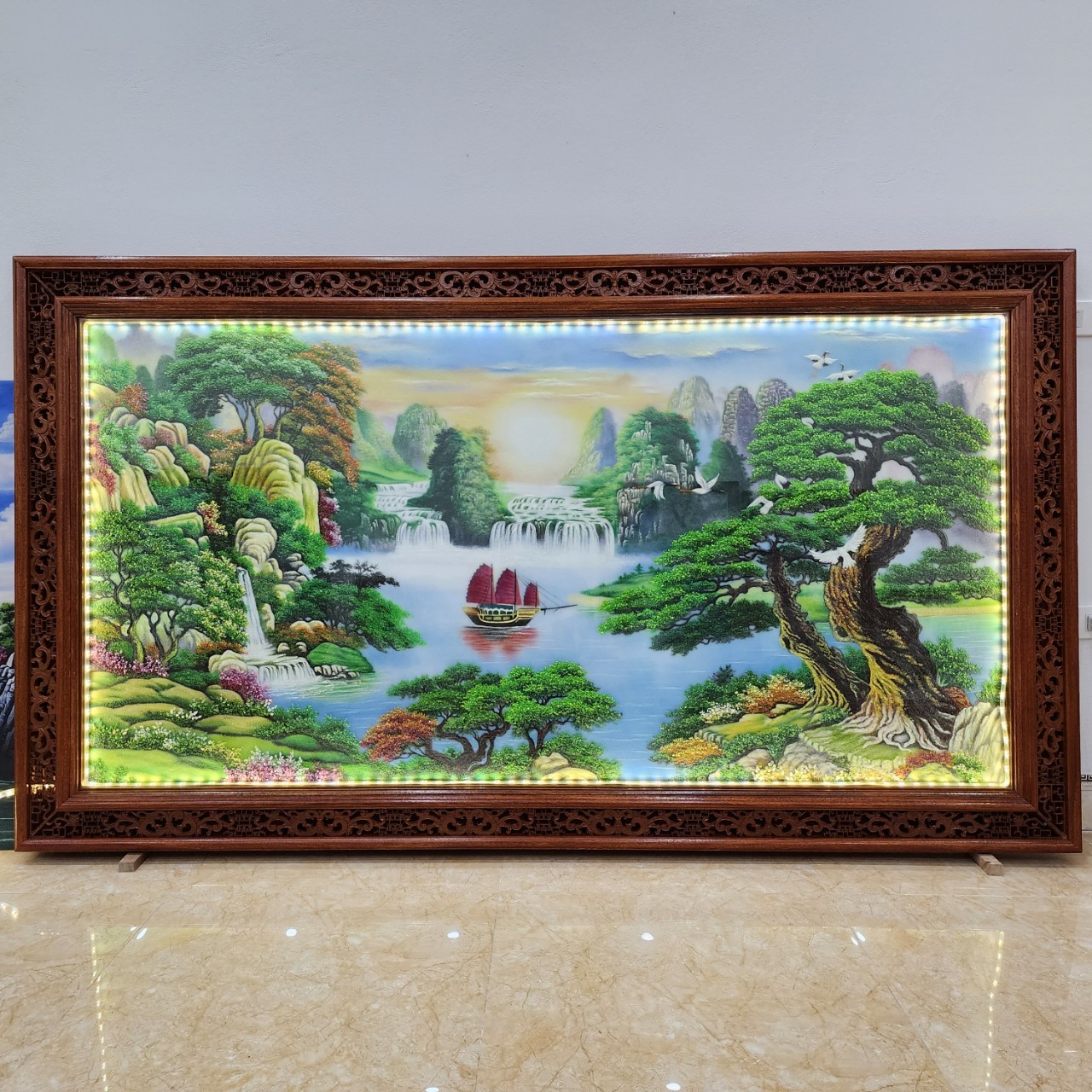 Treo tranh theo hướng nhà: bức tranh thuộc Thủy nên nếu treo ở hướng Bắc sẽ giúp kích hoạt năng lượng Thủy, giúp chủ nhà tăng khả năng lãnh đạo, tổ chức. Nếu treo ở hướng Đông sẽ giúp kích hoạt năng lượng Mộc, điều hòa nguồn năng lượng, tăng thêm các năng lượng tốt và giảm năng lượng xấu. Chọn kích thước tranh: gia chủ không nên vì thích phô trương mà chọn tranh quá lớn so với diện tích ngôi nhà. Theo đó, kích thước tranh nên tương xứng với không gian, diện tích phòng, khoảng trống tường treo tranh.